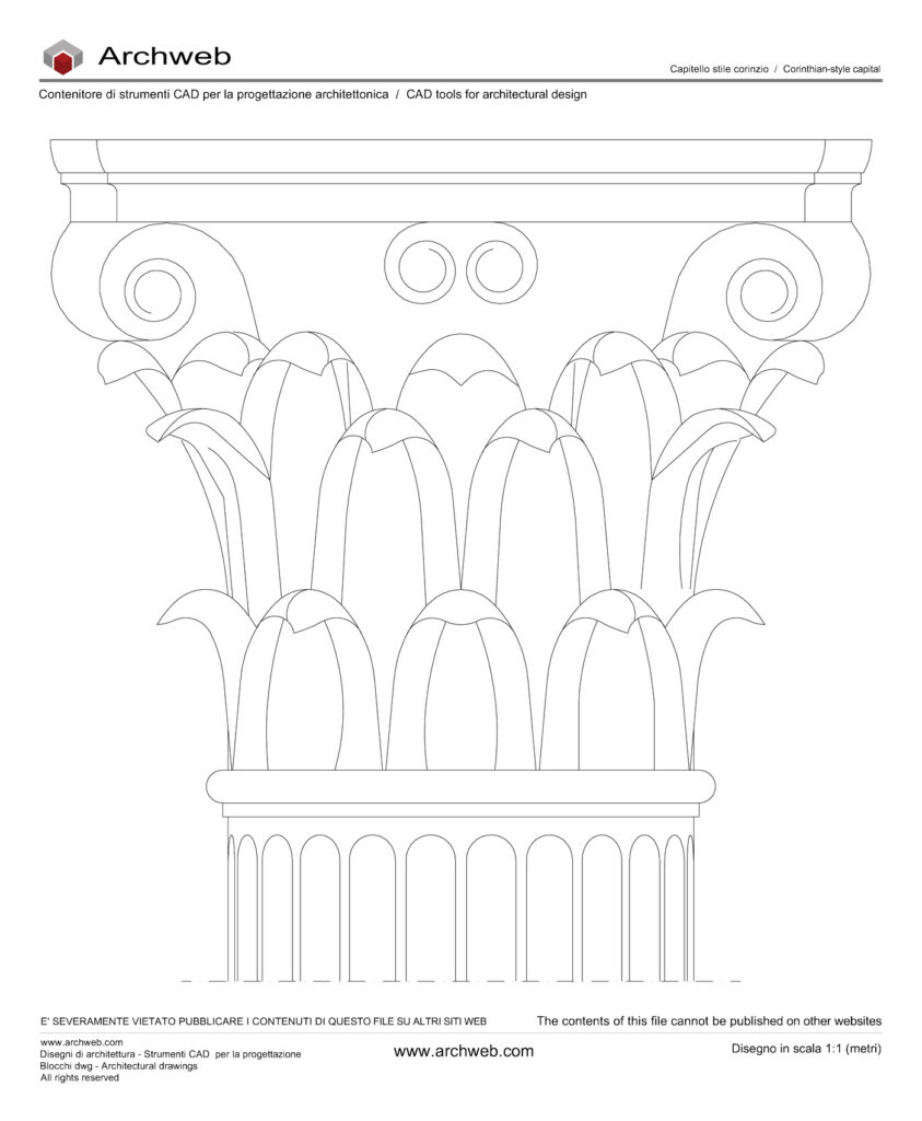 Il disegno DWG rappresenta un capitello corinzio.