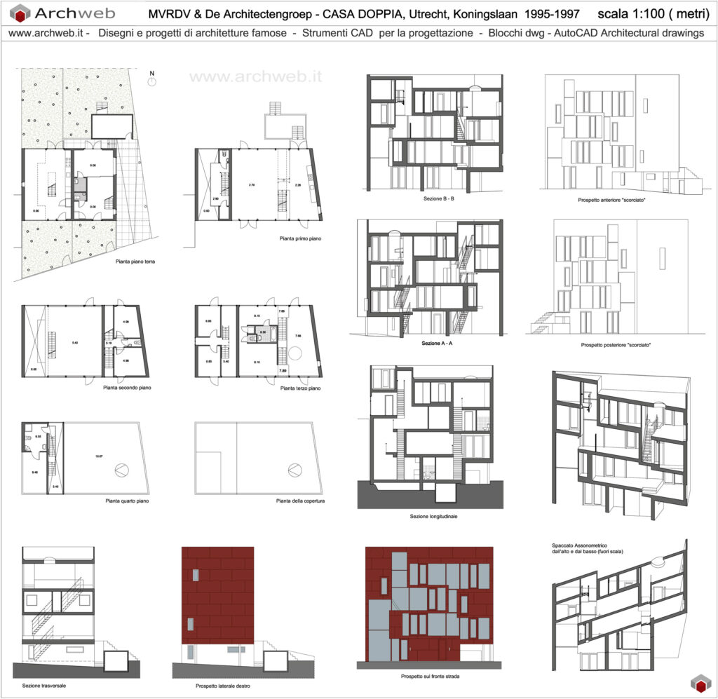 L'immagine di anteprima del progetto di questa architettura deriva direttamente dal nostro disegno dwg e rappresenta esattamente il contenuto del file dwg. Il disegno è ben ordinato in layer e ottimizzato per la stampa in scala 1:100.