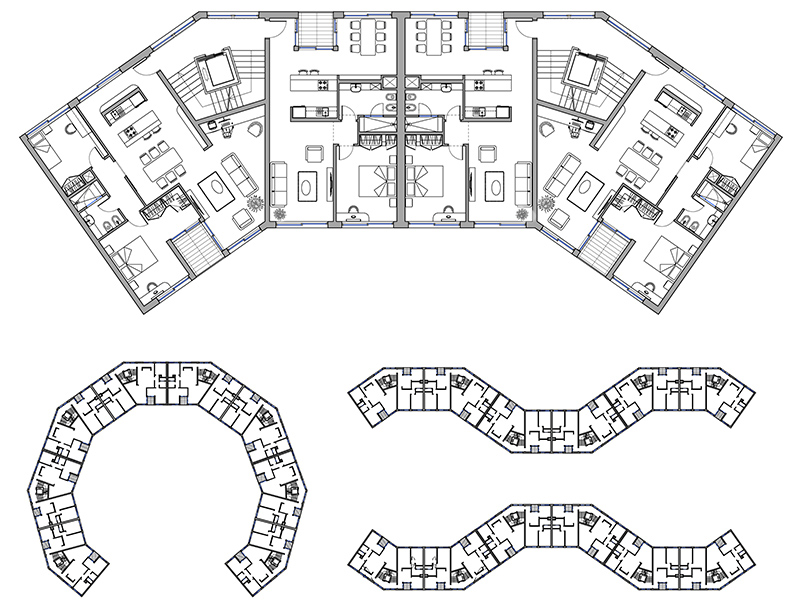 In questa categoria sono presenti file dwg utili alla progettazione: case in linea, progetti di case in linea, blocchi scala, soluzioni d’angolo. Disegni in scala 1:100.