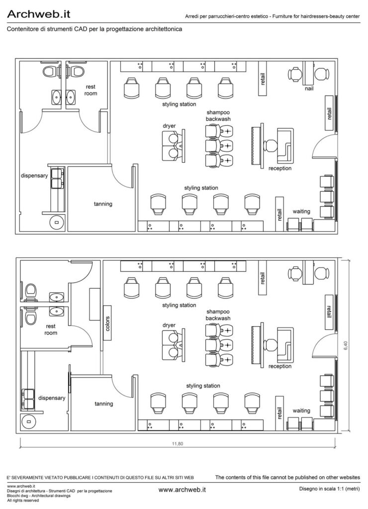 Centro estetico – Parrucchiere. Dimensioni metri 11.80 x 6.40 Superfice 75 Mq