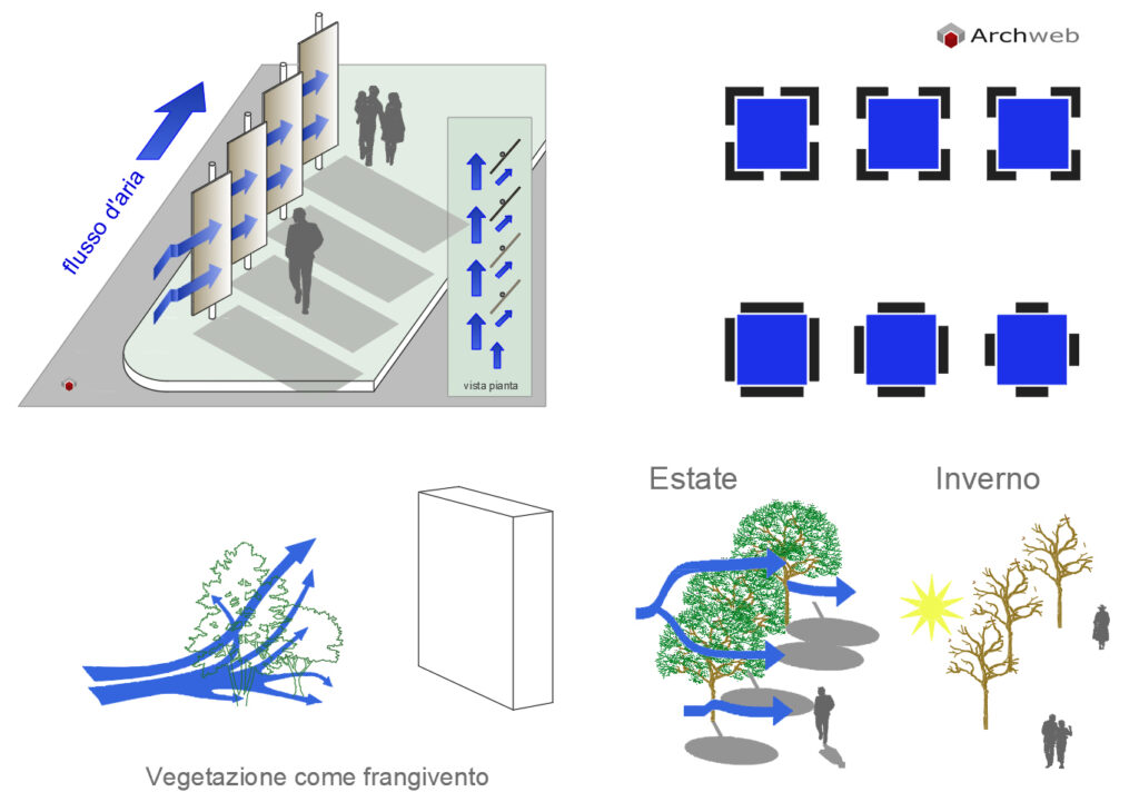 Frangivento, schermi e vegetazione come metodo per deviare e proteggersi dal vento