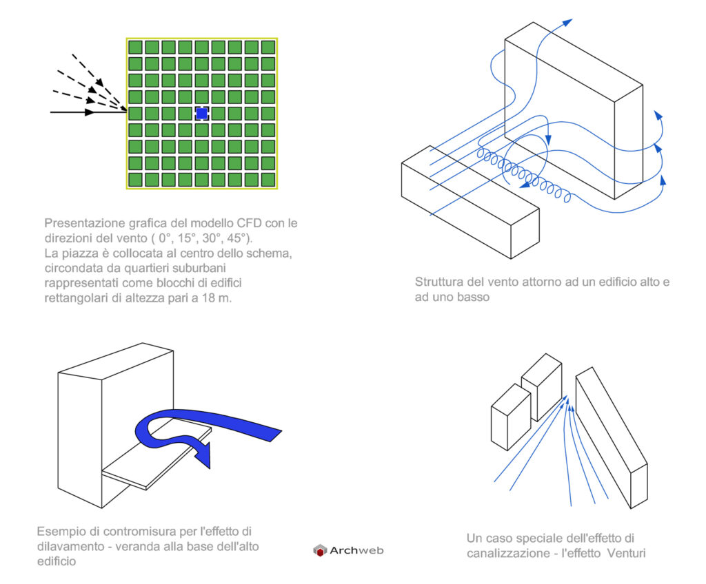 – Struttura del vento attorno ad un edificio alto e ad uno basso