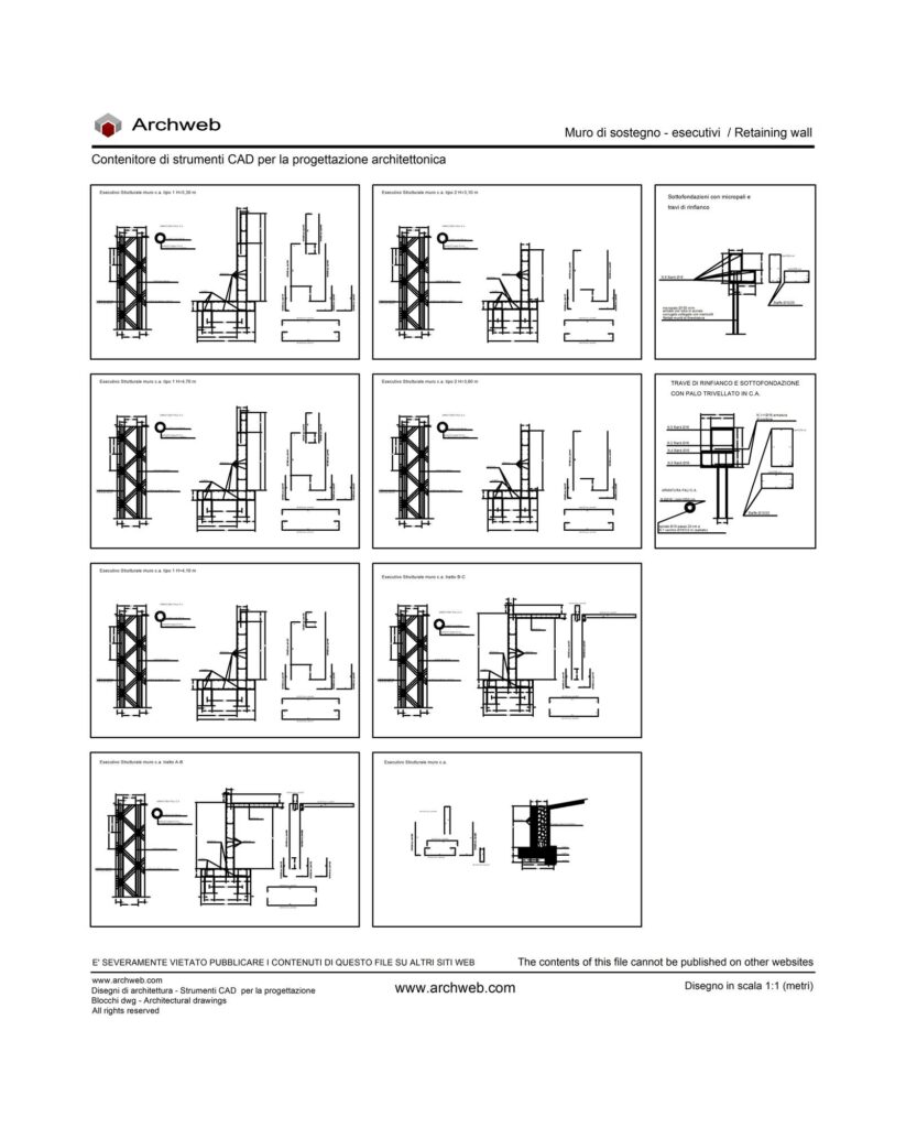 Muri in cemento armato, schemi esecutivi con dimensionamento dei ferri