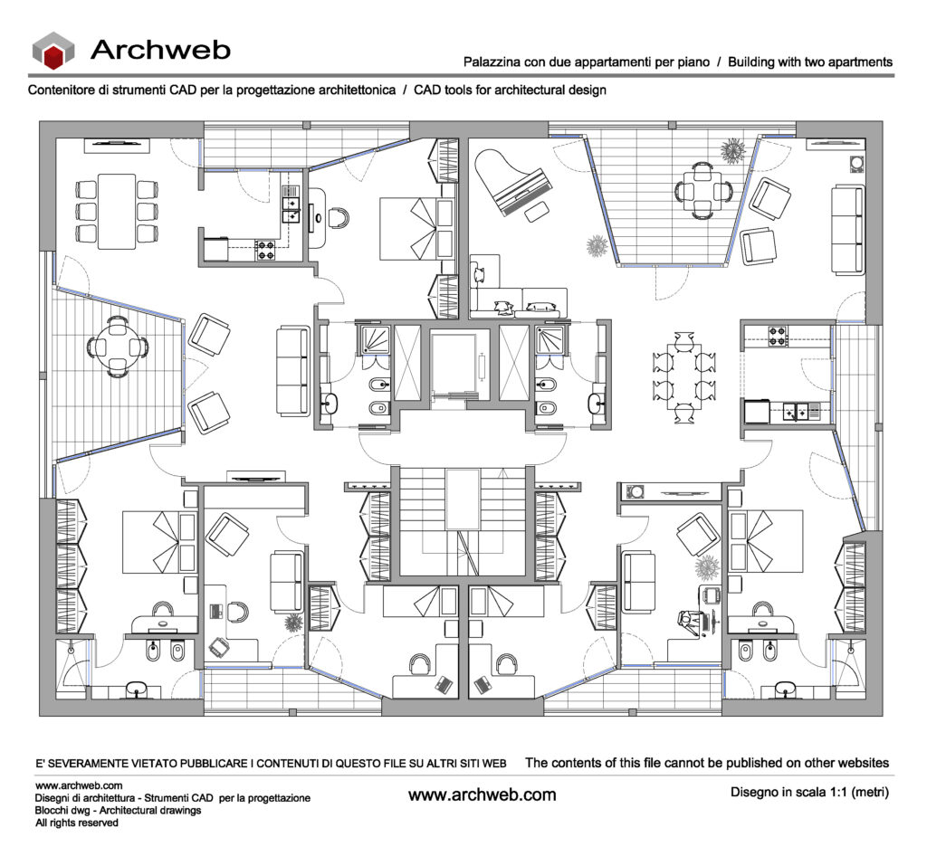 Palazzina residenziale con due appartamenti per piano – pianta tipo