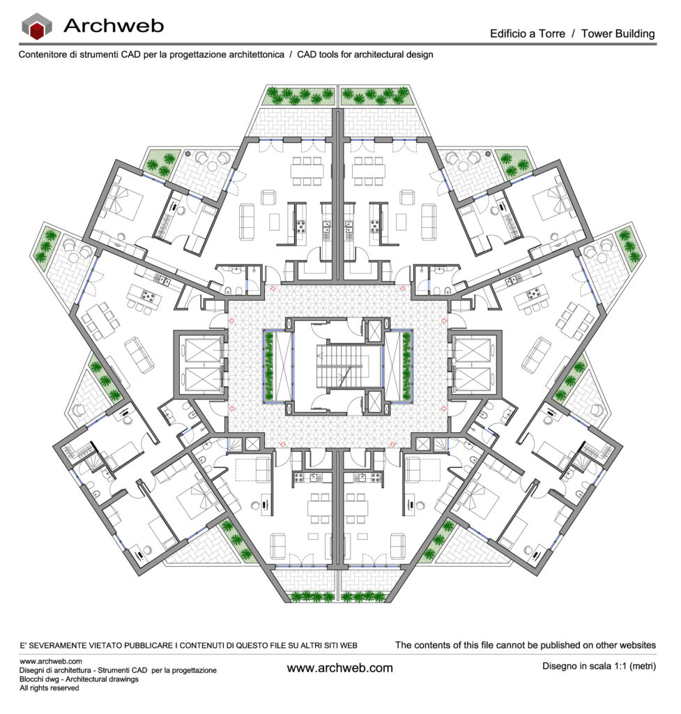 Schema progettuale per una torre residenziale con 8 appartamenti