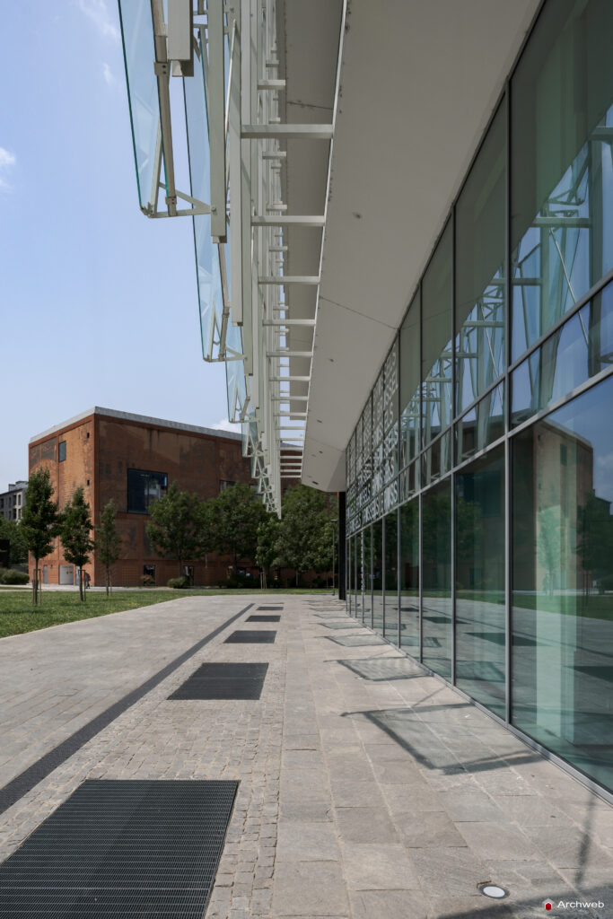 L’intervento ha previsto inoltre il recupero funzionale di tutti i livelli del complesso, compresi quelli interrati, trasformati in spazi luminosi e flessibili. Oggi De Castillia 23 ospita sedi direzionali di importanti aziende – come Just Eat Italia – e spazi pubblici aperti alla città, come la Brussels House, testimonianza di un’architettura capace di coniugare lavoro, socialità e sostenibilità.