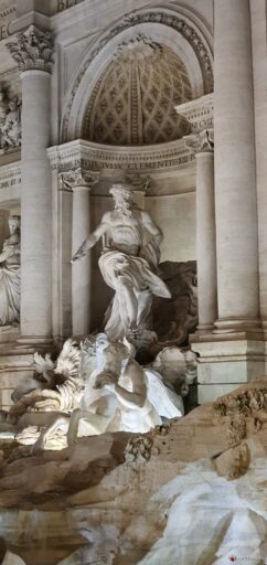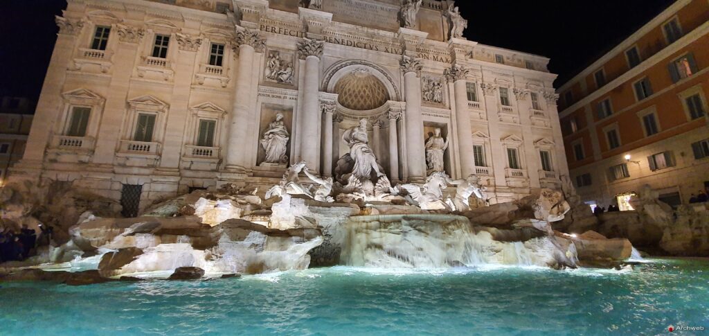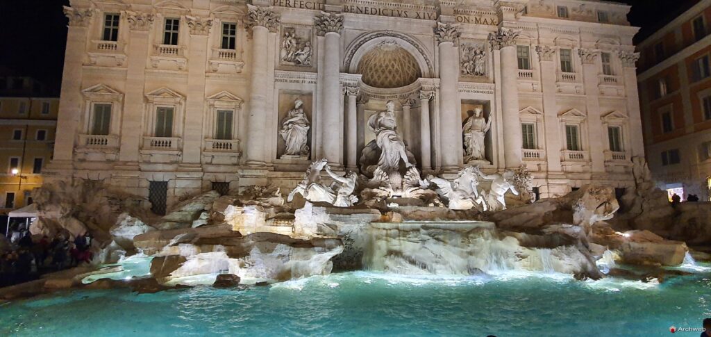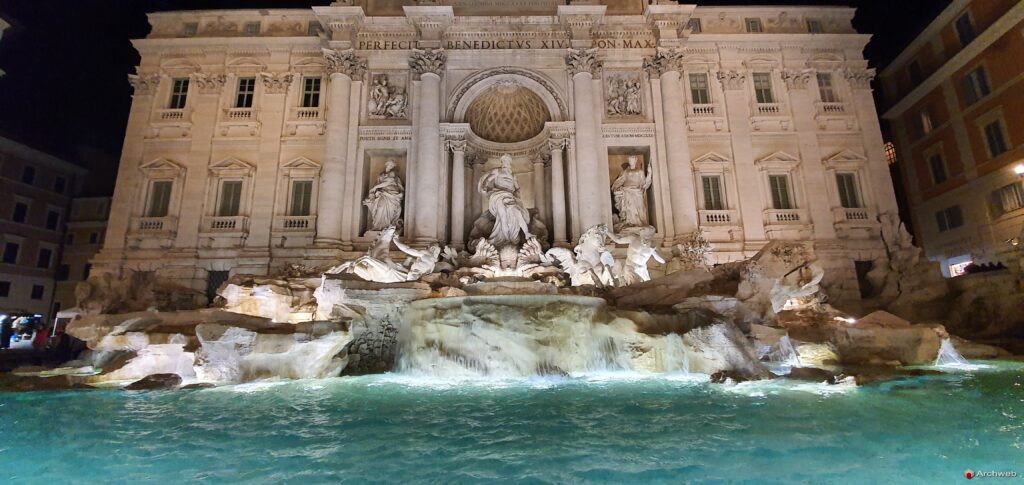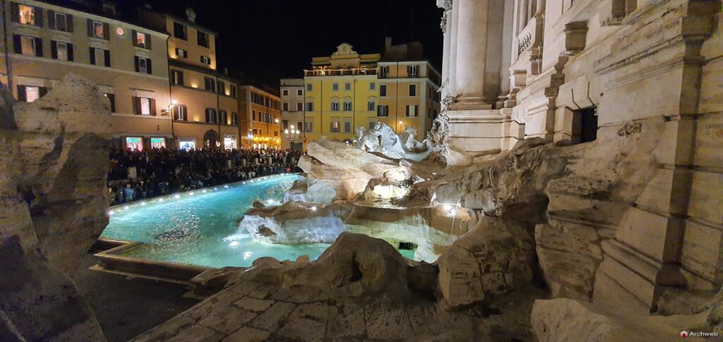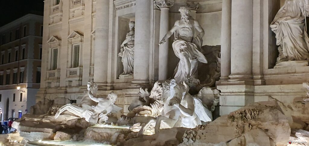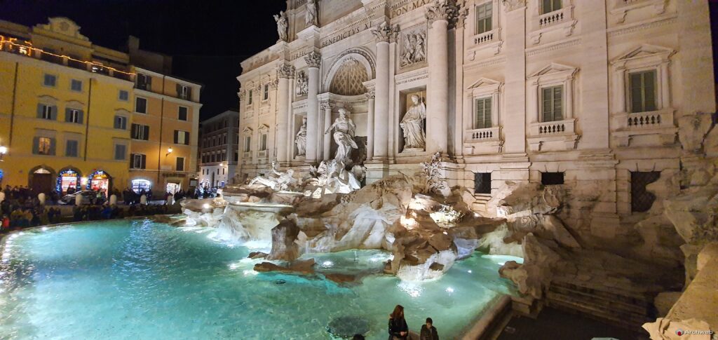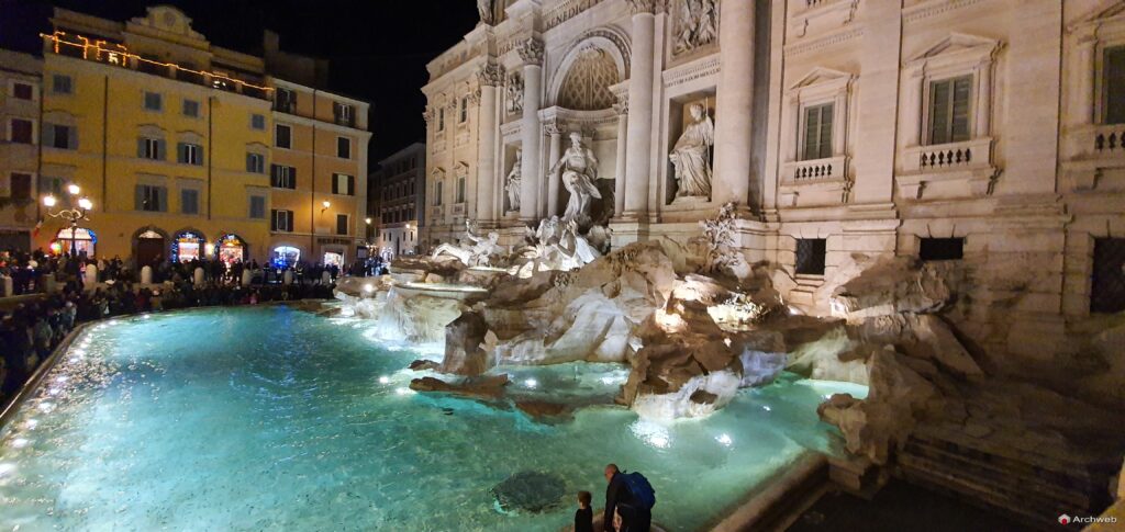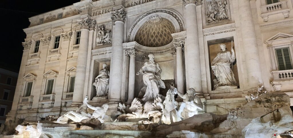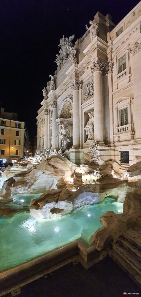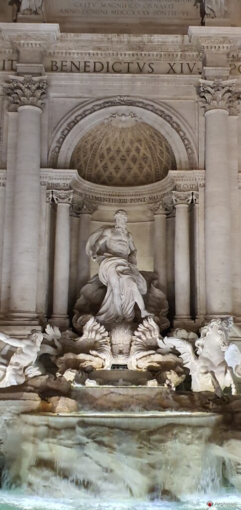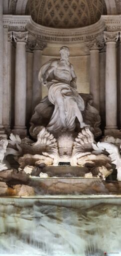 Nelle nicchie di destra e di sinistra si trovano la Fertilitas e la Salubritas, mentre ad una successiva esecuzione appartiene la statua centrale dell’Oceano su un cocchio tirato da cavalli marini realizzata nel 1762 da Pietro Bracci; sull’attico infine compaiono le raffigurazioni delle quattro stagioni.
