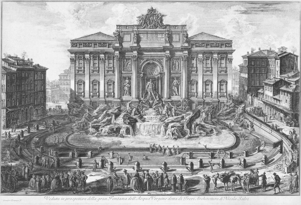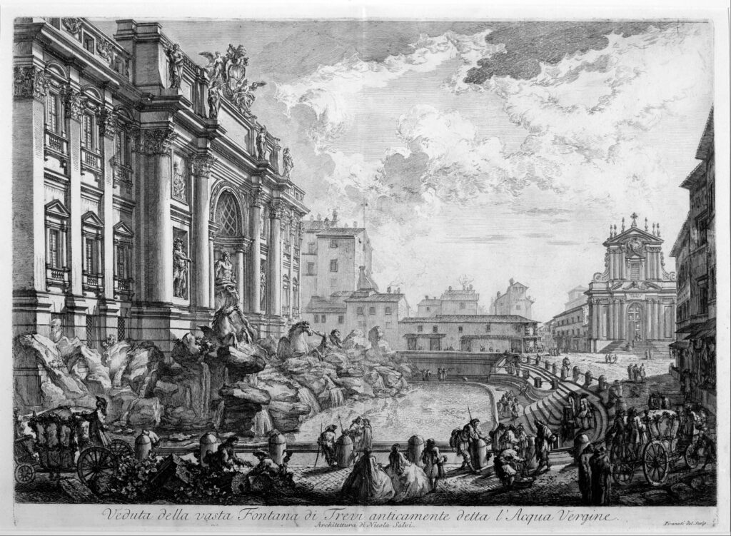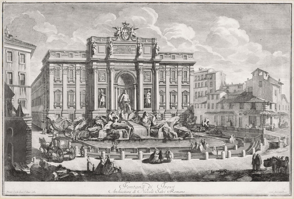 Il progetto vinse il concorso bandito da Clemente XII nel 1732 ed il Salvi dedicò gran parte della sua attività alla realizzazione della Fontana. L’acquedotto dell’Acqua Vergine, che terminava al Pantheon, venne fatto proseguire fino a piazza di Trevi da Urbano VIII e molti architetti, fra i quali anche Bernini e Pietro da Cortona, si cimentarono nel tentativo di dare una sistemazione alla fontana. Nel 1731 era stato bandito un primo concorso che non aveva avuto alcun vincitore.