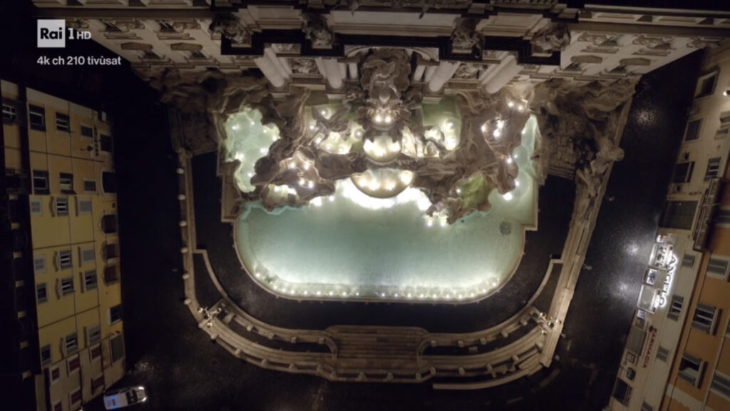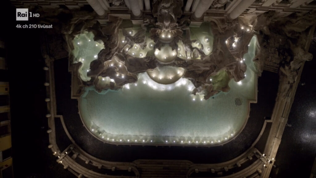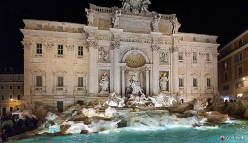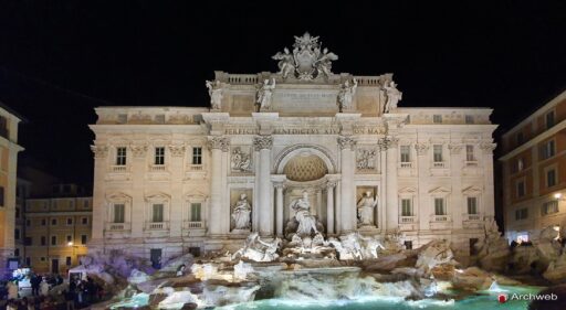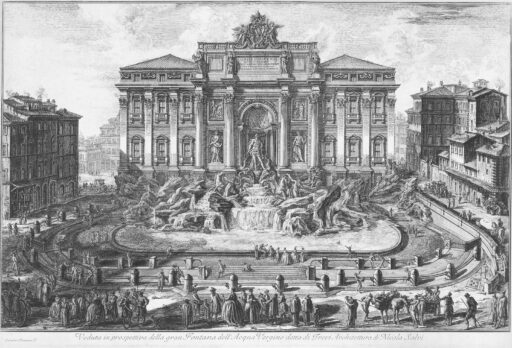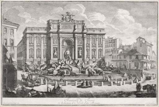 Si tratta forse di uno dei disegni più rappresentativi del fondo conservato al Gabinetto Comunale delle Stampe: riguarda il progetto definitivo per la Mostra dell’Acqua Vergine a piazza di Trevi eseguito dall’architetto Nicola Salvi, accademico di San Luca, architetto dei Sacri Palazzi Apostolici e dell’Arciconfraternita dell’Orazione e Morte.