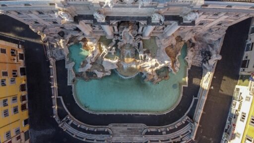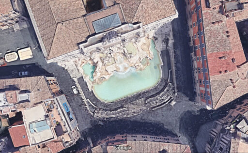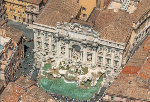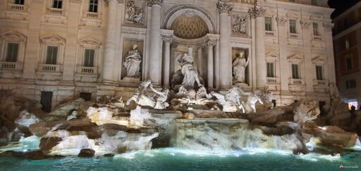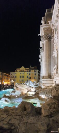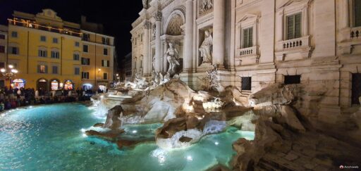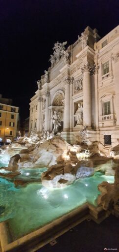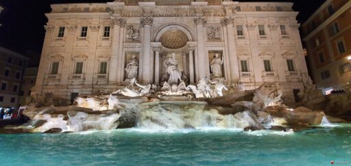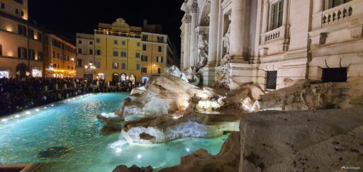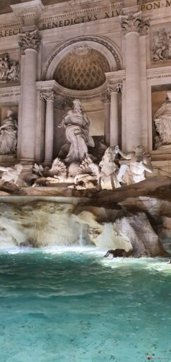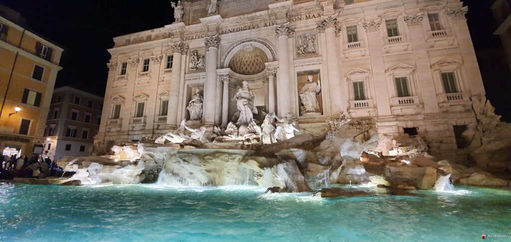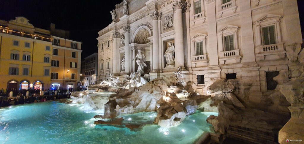 La fontana all'incrocio di tre strade segna il punto terminale della "moderna" Acqua Vergine, la rinascita Aqua Virgo, uno degli acquedotti che fornivano acqua all'antica Roma. Nel 19 a.C., presumibilmente con l'aiuto di una vergine, i tecnici romani localizzarono una fonte di acqua pura a circa 13 km (8,1 miglia) dalla città. (Questa scena è presentata sulla facciata della fontana attuale.) Tuttavia, l'eventuale percorso indiretto dell'acquedotto raggiunse la sua lunghezza di circa 22 km (14 mi). Questa Aqua Virgo ha portato l'acqua nelle Terme di Agrippa. Ha servito Roma per più di 400 anni.
