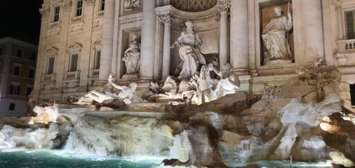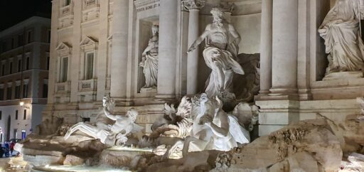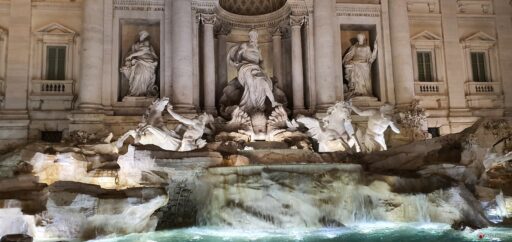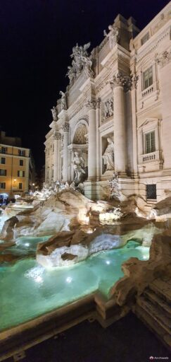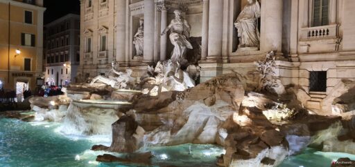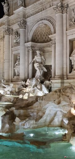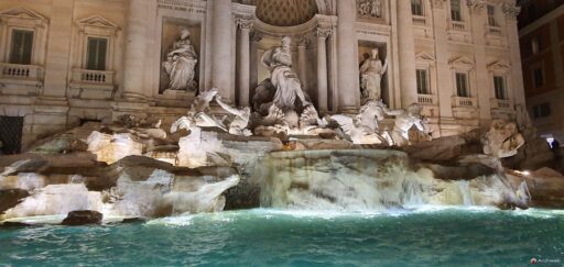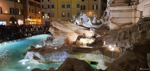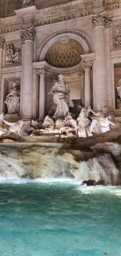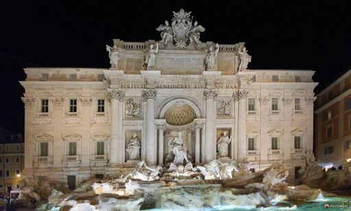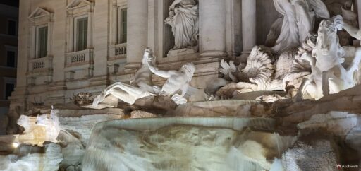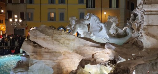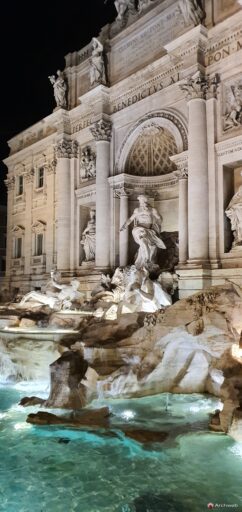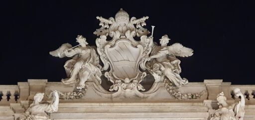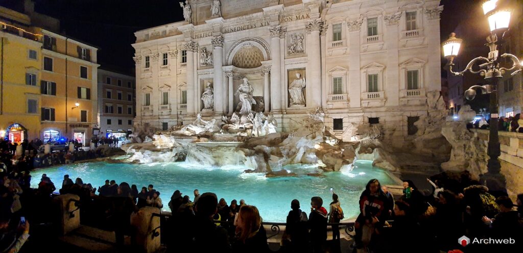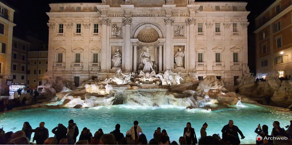 Costruita sulla facciata di Palazzo Poli da Nicola Salvi, il concorso indetto da papa Clemente XII nel 1731 era stato inizialmente vinto dallo scultore francese Lambert-Sigisbert Adam ma successivamente l'incarico passò a Salvi: si dice che il cambiamento fosse dovuto al fatto che il pontefice non voleva affidare l'opera a uno straniero; invece, un'altra versione, spiega che Adam doveva ritornare in Francia