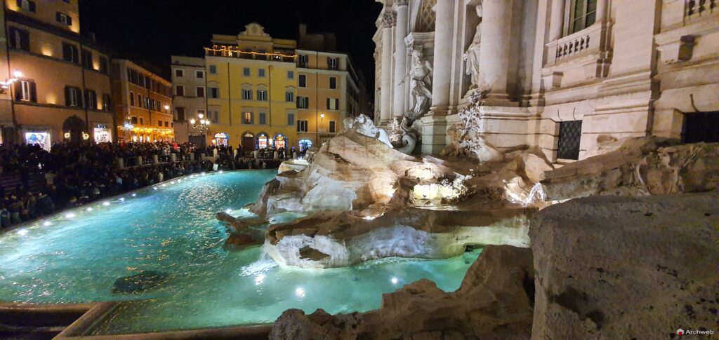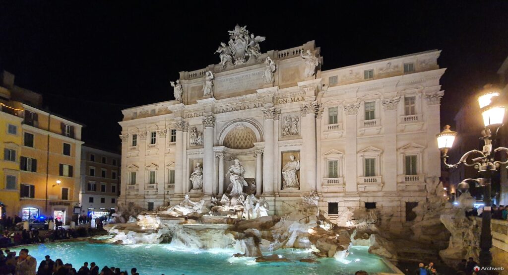 La caratteristica che distingue la fontana, una delle più note e significative fra le costruzioni romane della prima metà del XVIII secolo, è il rapporto esistente tra le strutture architettoniche del palazzo Poli che fa da fondale e la decorazione scultorea, perfettamente interagenti. Le statue, la scogliera e le figure del primo piano discendono dalla più grande tradizione barocca romana.