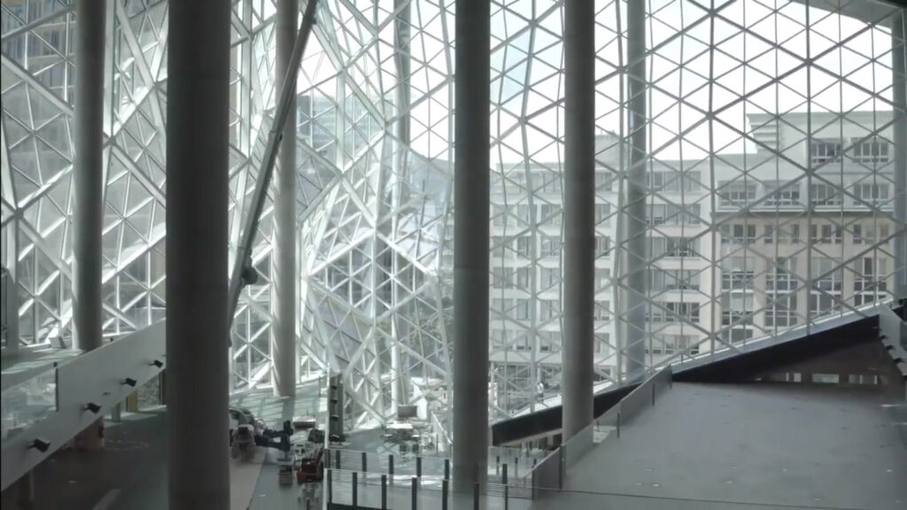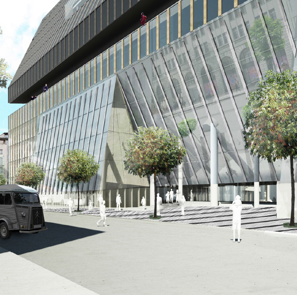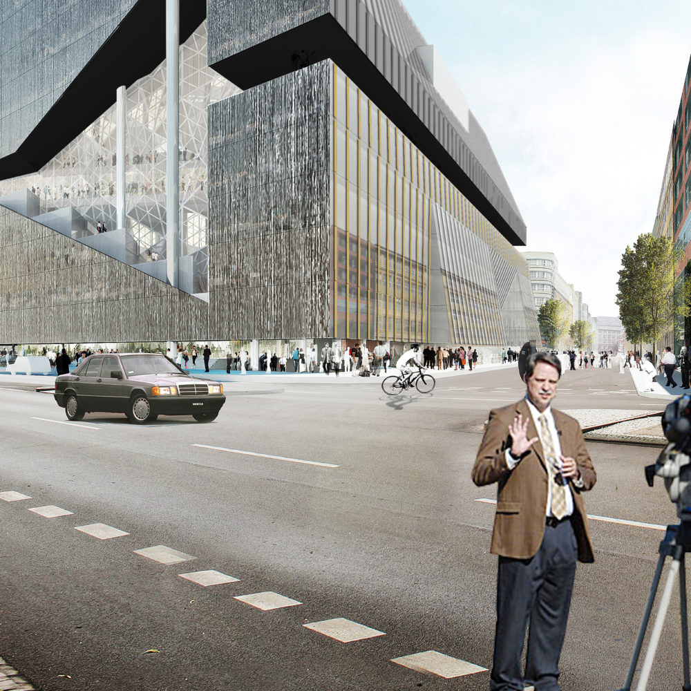 Durante la competizione, abbiamo contribuito a definire il concetto in stretta collaborazione con OMA e dimostrato come potrebbe essere costruito. A seguito dell'incarico abbiamo sviluppato il progetto strutturale dell'edificio e la struttura portante della facciata dell'atrio.
