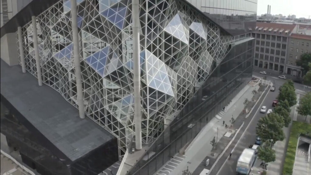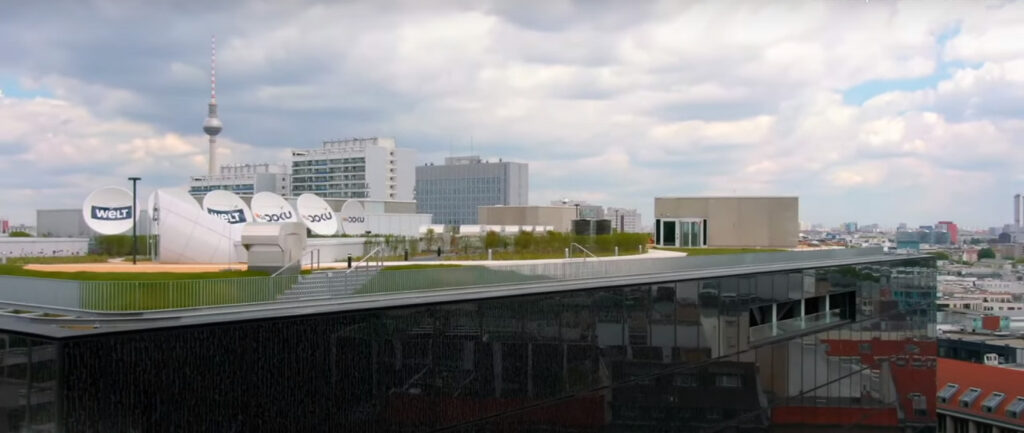 Situato sul sito dell'ex parco Linden, di fronte all'esistente sede Axel Springer sulla Zimmerstrasse, l'edificio potrà ospitare 3500 dipendenti. Il progetto prevede un atrio alto 30 metri, con elementi di facciata tridimensionali, che attraversa diagonalmente il centro dell'edificio. Sul tetto verrà realizzato un parco in sostituzione dell'originale. Entrambi saranno accessibili al pubblico.