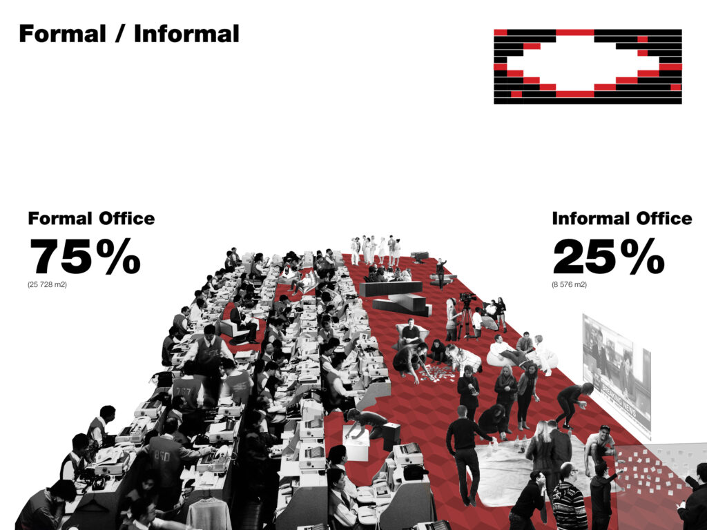 L'edificio a forma di cubo inondato di luce celebra il futuro del lavoro digitale e della collaborazione, portando le filiali digitali del marchio nell'edificio per metterle in rete con il resto del marchio. Strutturato attorno a un atrio centrale in vetro alto 45 metri, una serie di piani terrazzati simmetrici corrono in tutto l'edificio creando un ambiente di lavoro fluido e visivamente connesso con un mix di spazi di lavoro tradizionali e informali.